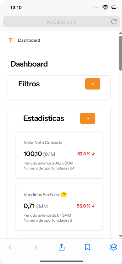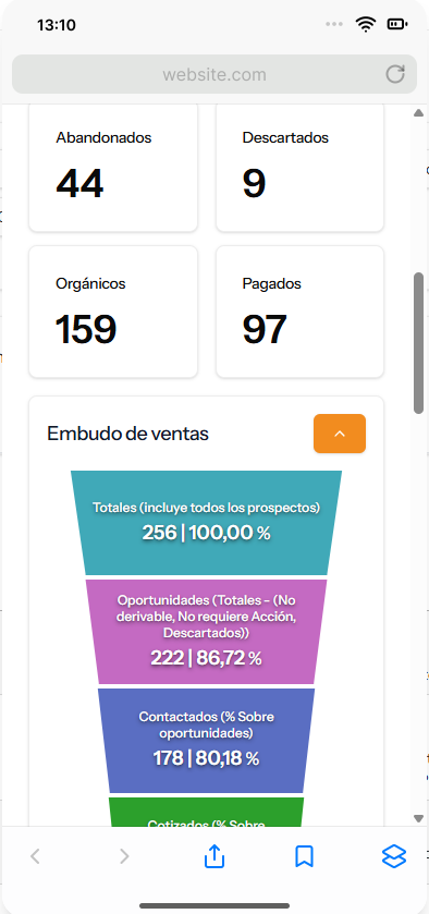 Rediseño completo de dashboards, eficiencia y embudos con enfoque responsive.